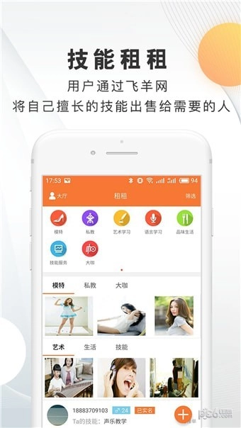 技能租租,用户借助飞羊网平台,把自身擅长的技能提供给有需求的人。