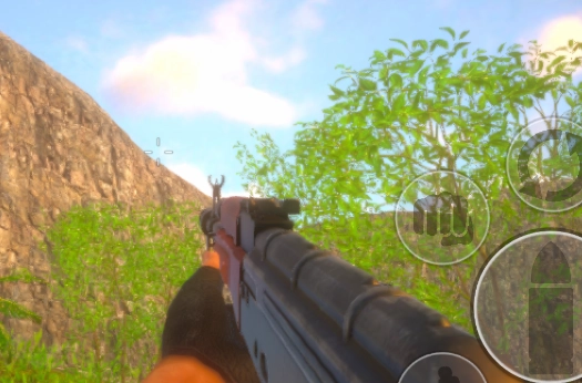 3.正式进入后,左侧为角色移动控制区域,右侧为射击、跳跃、蹲下、换弹、近战和互动等操作按钮。