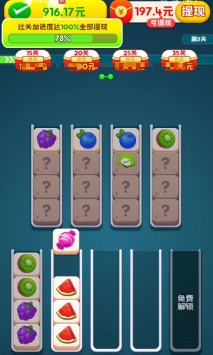 多方来财是一款充满休闲趣味的合成闯关游戏。在游戏里,玩家会参与各类合成操作。该游戏分为上下两个部分,上方有各式各样的水果方块供你选择,下方则是用于放置的空间。通过在不同空间间来回切换,只要把四个相同的水果放置到一处,就能消除并合成红包。而且玩家还能够解锁更多槽位,以此减轻游戏压力。喜爱这款游戏的玩家,赶紧来下载体验吧!