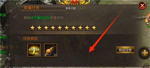 1. 领取除魔任务,前往特定地图(例如地下魔宫五层),杀死相应数量的怪物后领取奖励。