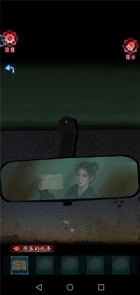 16、捡起掉落的纸条,回到车上,点击上面的镜子,再用纸条点击镜子。