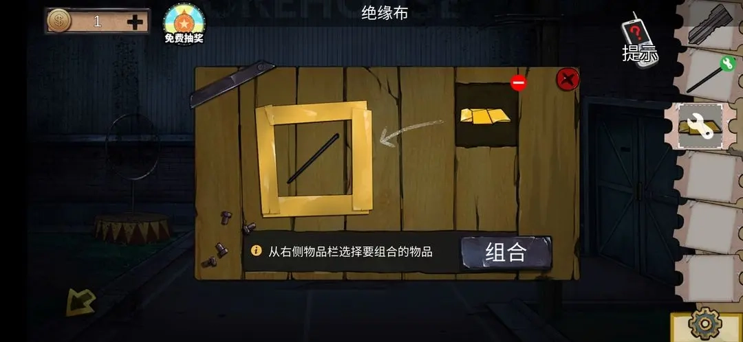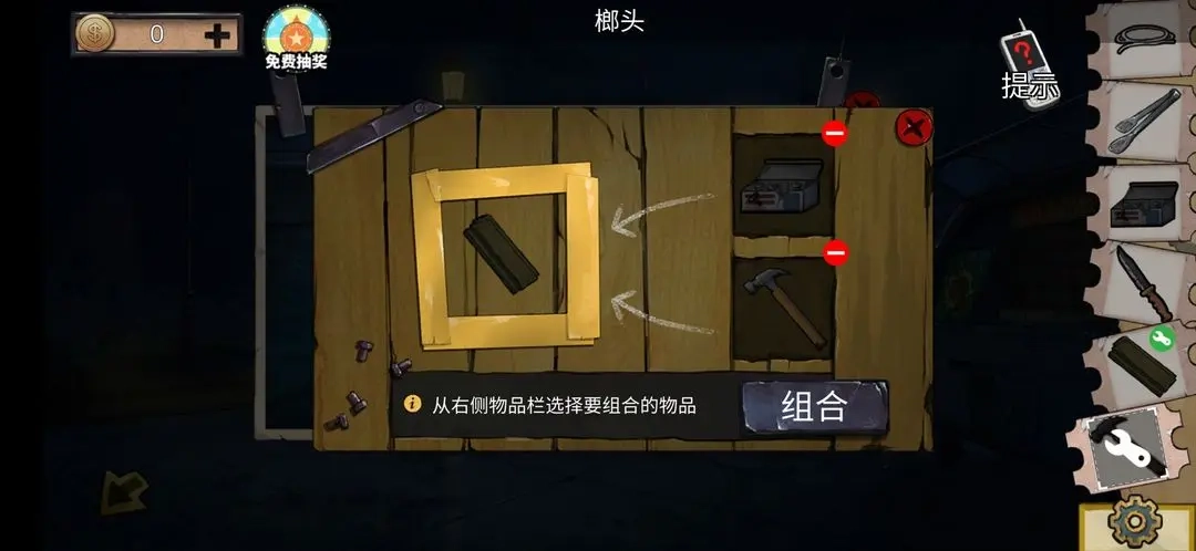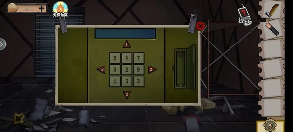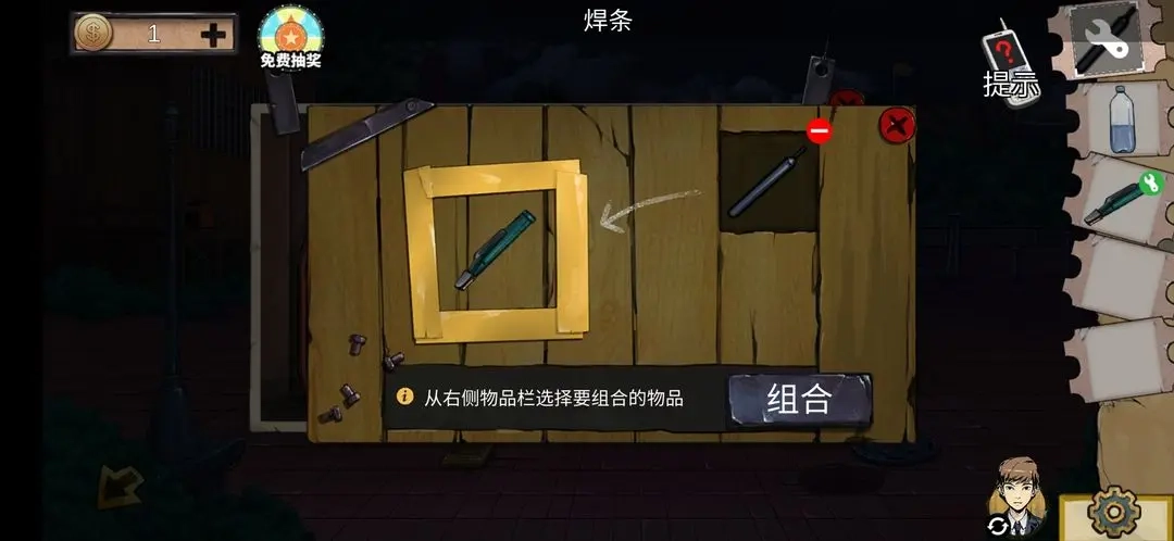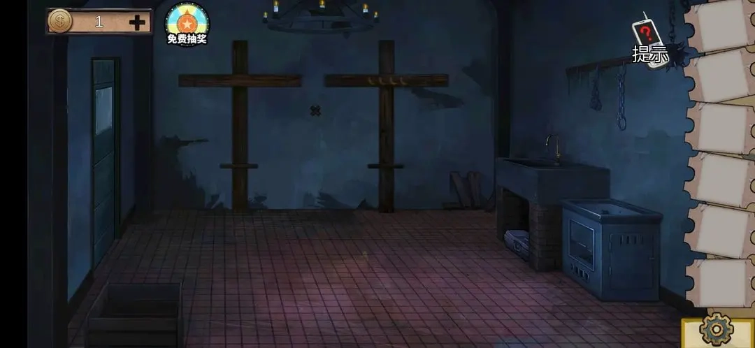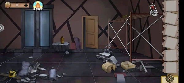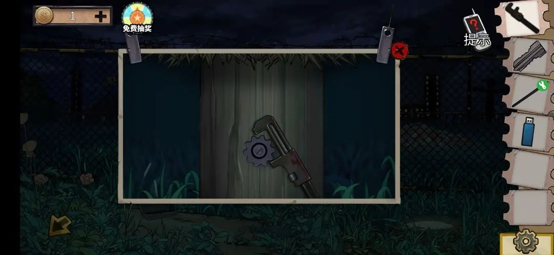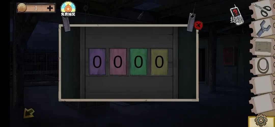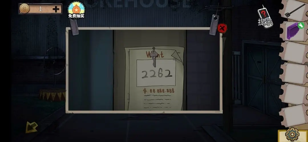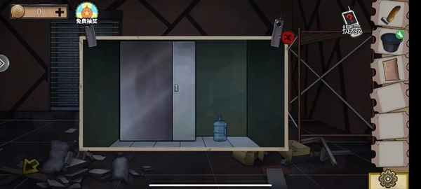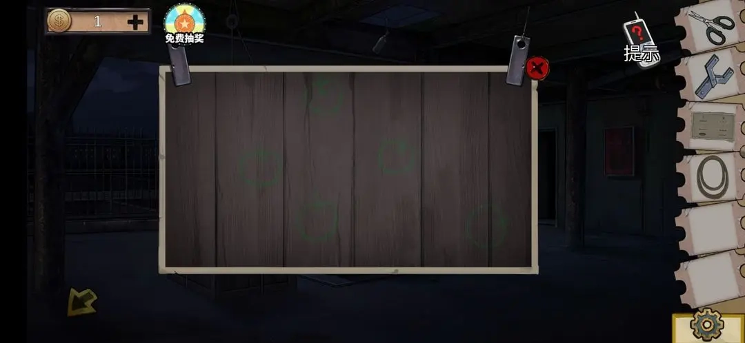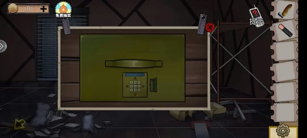 获取若干木板,随后返回保安室,点击墙上的纸条以获取提示。