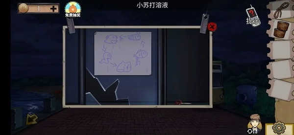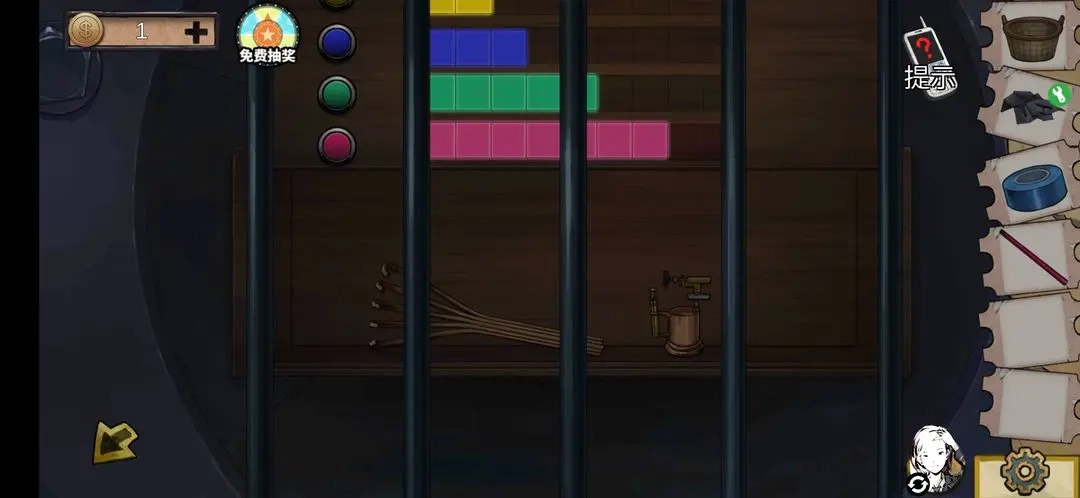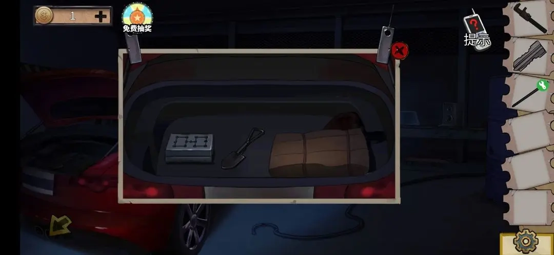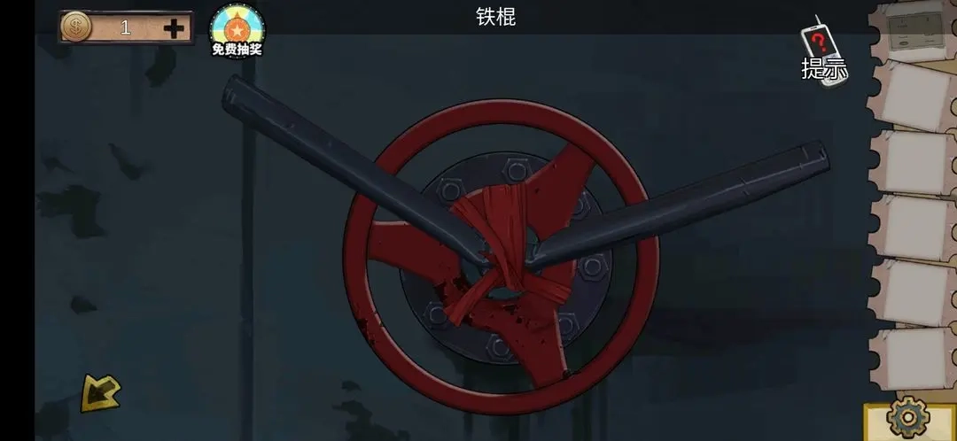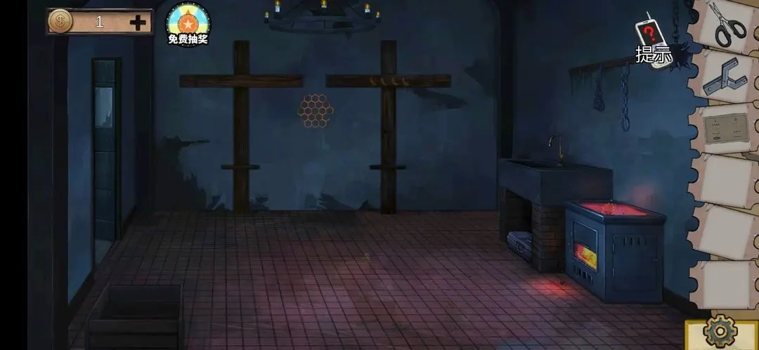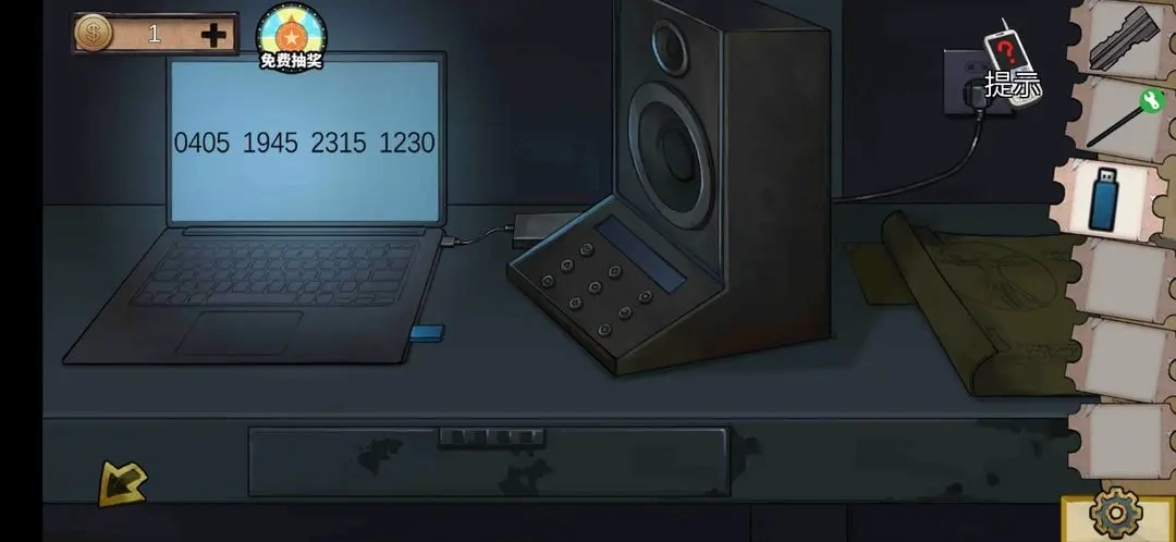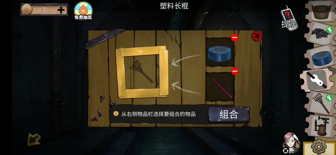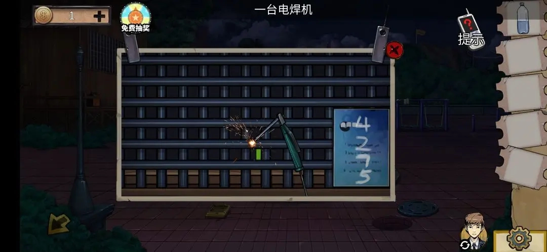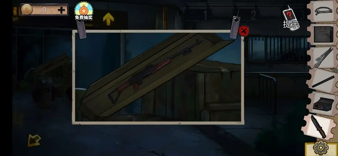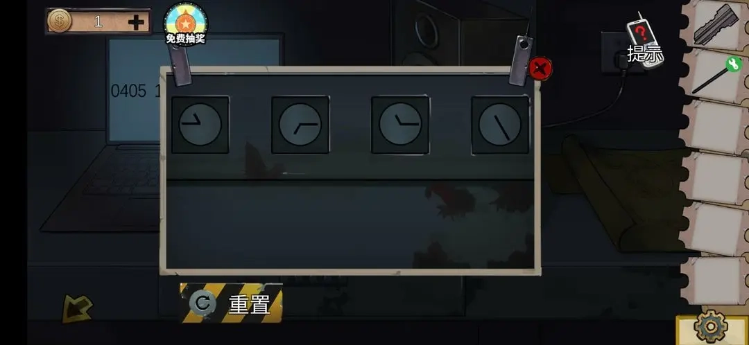 获取若干木板,随后返回保安室,点击墙上的纸条以获取提示。