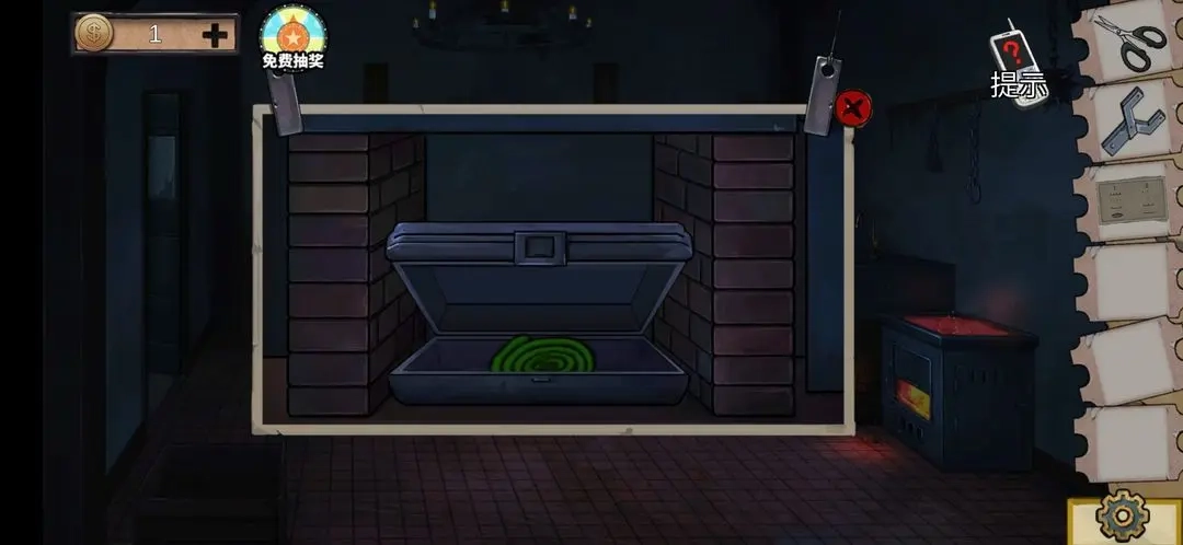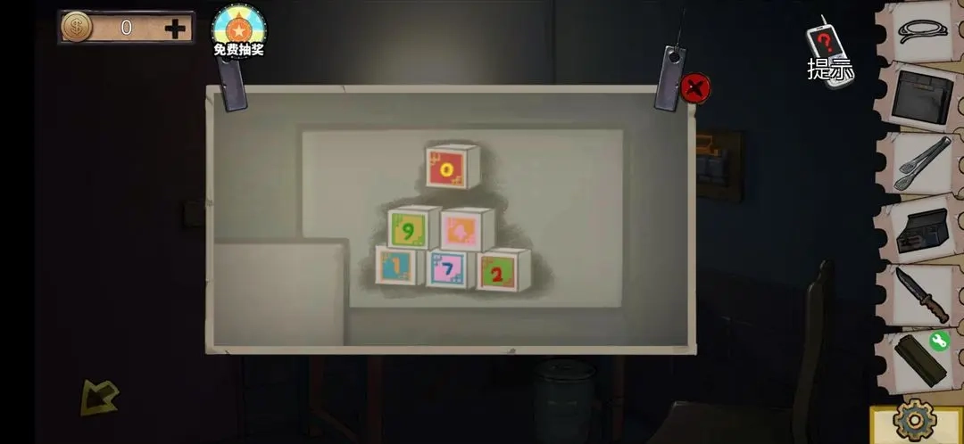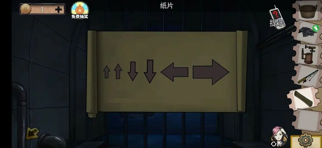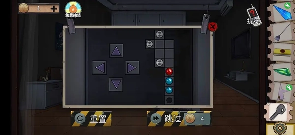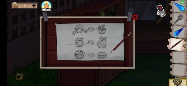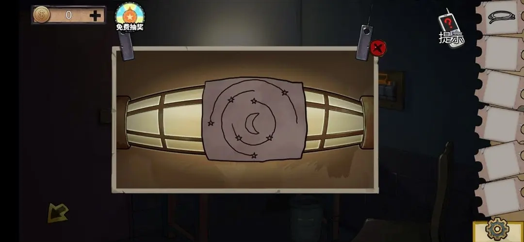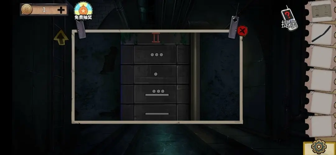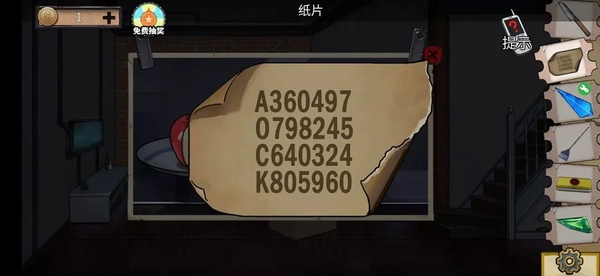 返回右侧的房间,点击柜子,依据纸条上拓印的线索完成游戏。