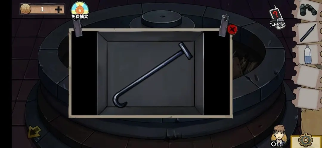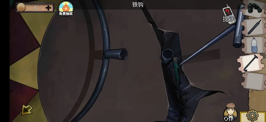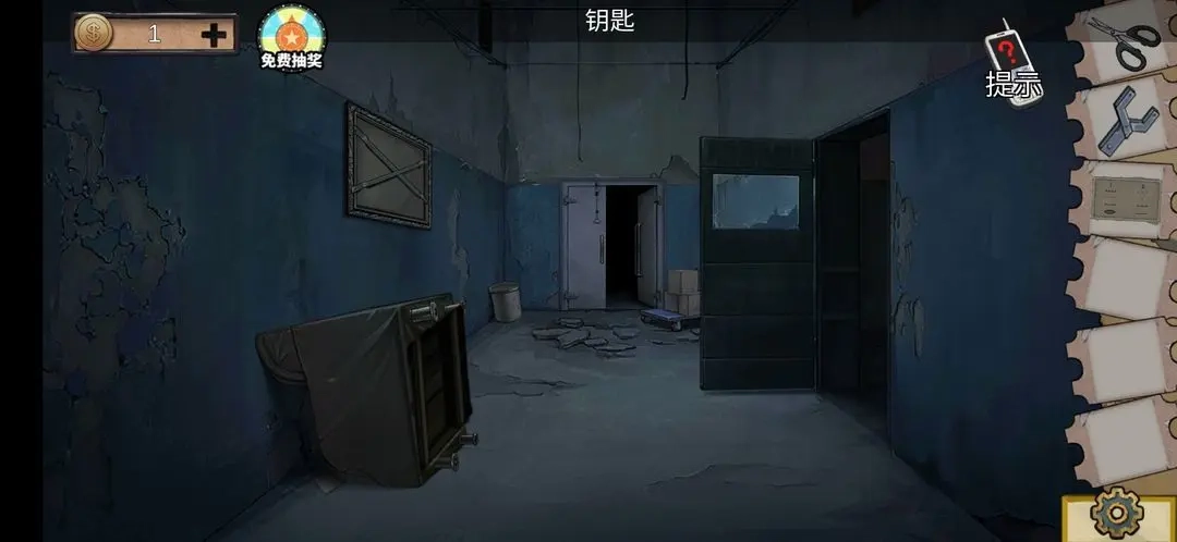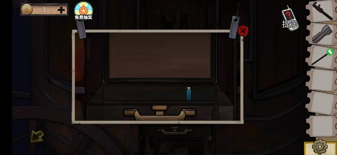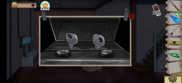 通过使用钥匙打开左边的抽屉,能够获取到半把铁钳。