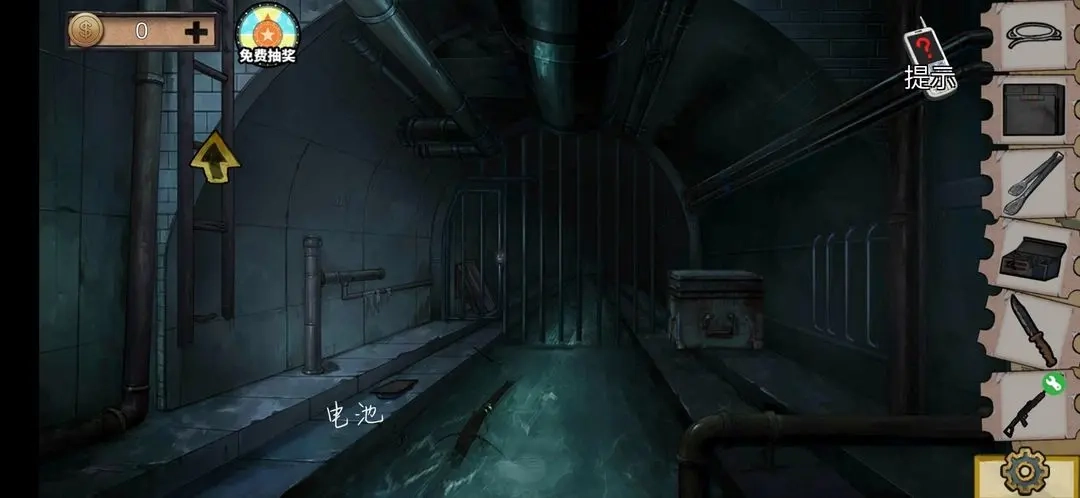 走进下水道,从地上拾起电池,把它和激光枪组装在一起。