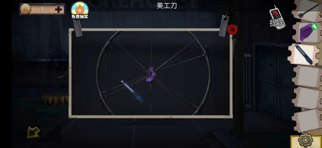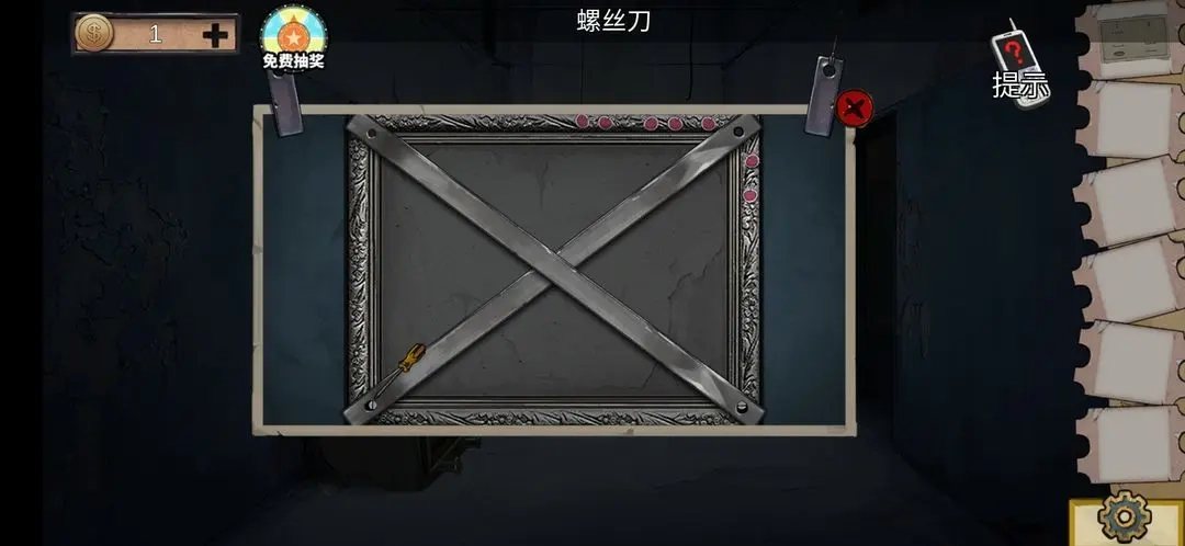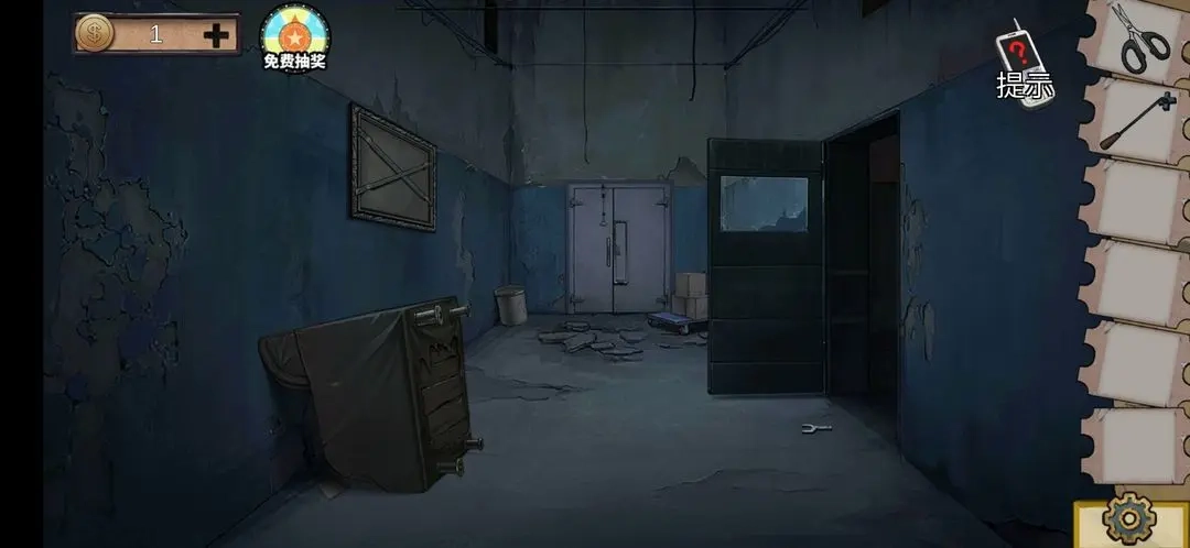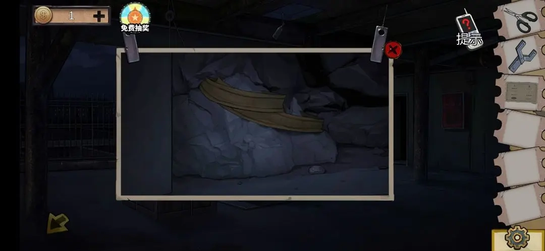 获取第一座电梯门上的剪刀,接着用这把剪刀剪开左边的画布。
