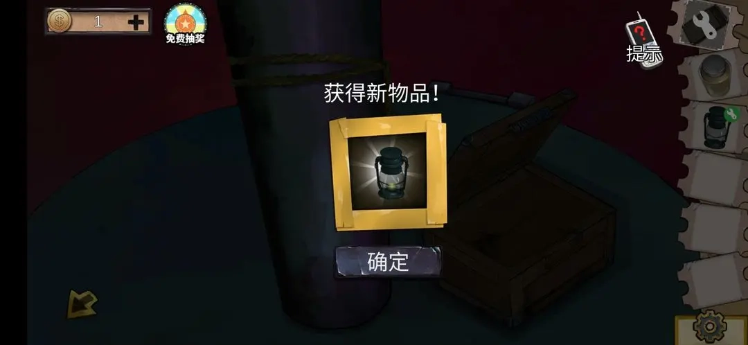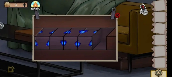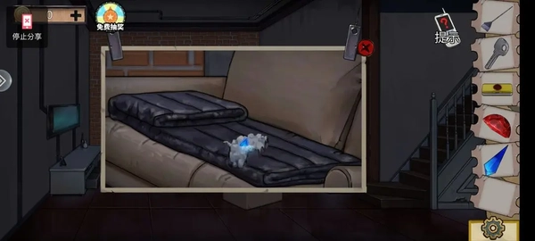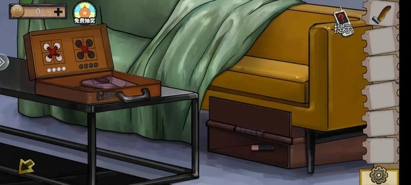 在左下角的沙发处,把沙发罩掀开,便能看到一个缺了一块的箱子。