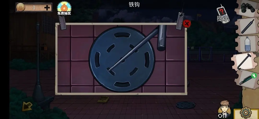折返至游乐园的大门口,随后拿起铁棍,用力将下水道井盖撬开。