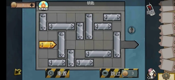 先拿钥匙开启门禁系统下方的锁,接着依照前方箱子上图案的提示来完成棋子的摆放。
