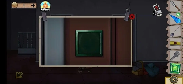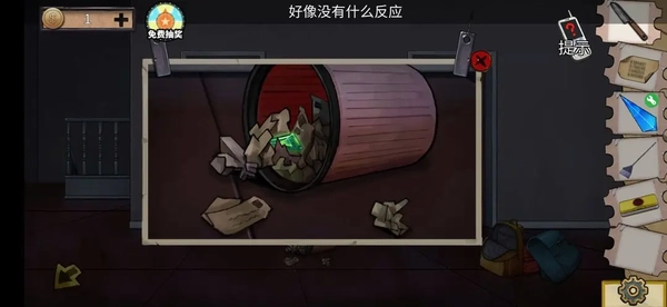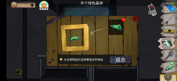离开房间,点击垃圾桶获取半个绿色晶体。