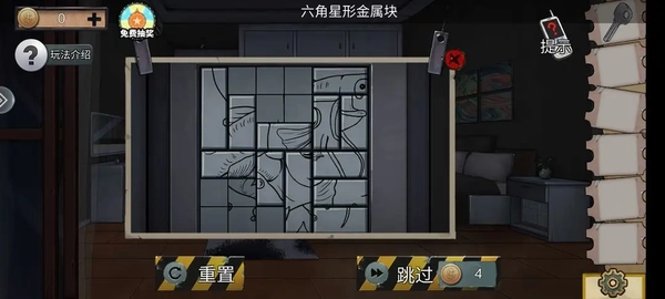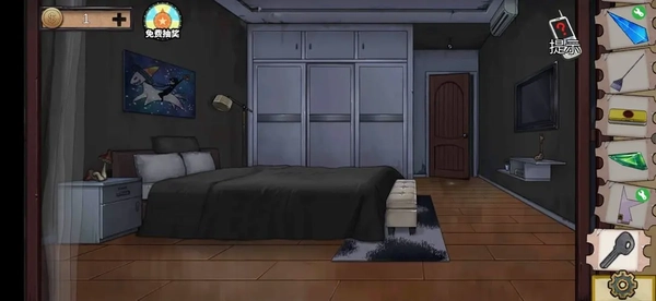 前往第二个房间,将组合好的金属块放置在床头柜上的凹槽之中。