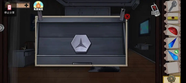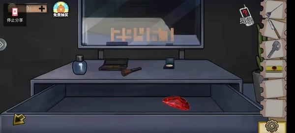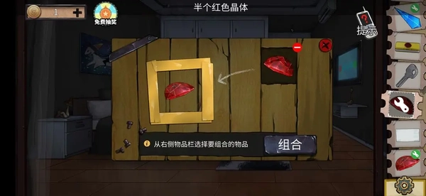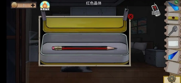 轻点左边的梳妆台,即可获取粉饼,接着拉开抽屉,便能得到半块红色晶体。