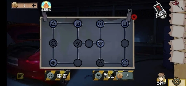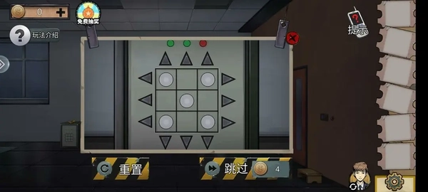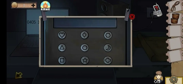 轻点密码箱,切换回男性视角,接着点击玻璃门上的密码锁,仔细观察上面的图案。