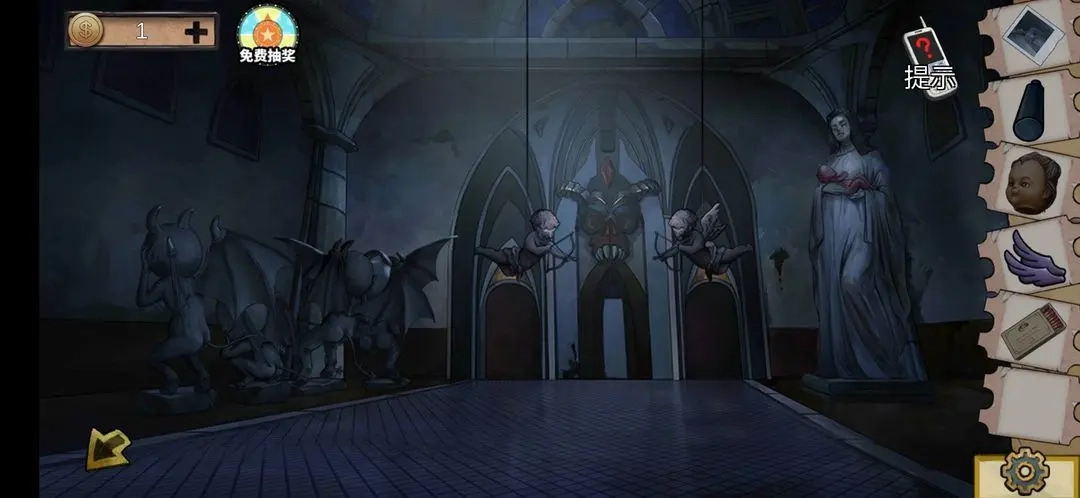 先在地面上捡起半个雕塑,接着点击杂物堆获取小方块,随后返回一楼,去到沙发底部的箱子那里。