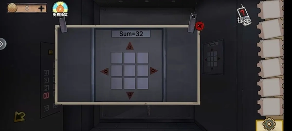 请仔细留意电梯右侧的图案,从中获取线索sum=32