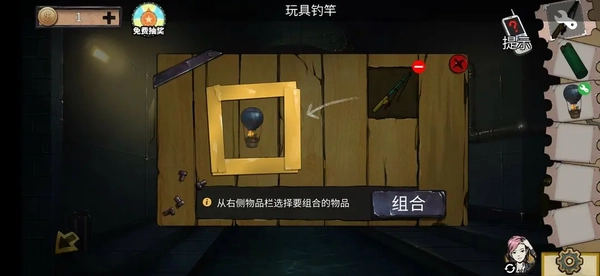 获取木棍与水泥,借助木棍挑出钥匙,进而打开木门。