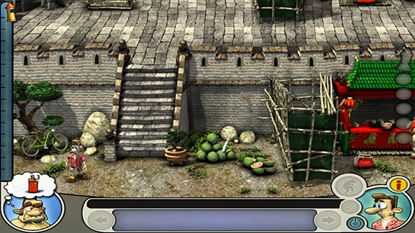 1、前往右上方,拿起cannon - ball(古炮炮弹),并将其应用于左下方的melons(西瓜); 场景22、来到左上方的tool belt(工具摊),拿起spanner(扳手),然后用于左下方的collapsible bike(可折叠自行车)。
