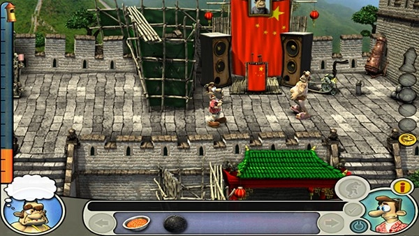 这一关卡相对容易。首先依照提示拿起热水袋,同时顺手拿走右边箱子里的橡皮筋。接着往上走,按照提示放置热水袋,随后躲进烟囱。等老头被他母亲打屁股后,前往左上方,捡起玩具兔以及带有虱子的毛巾。之后在左上方的工具箱拿到万能胶。等老头离开左下方后,去到左下方,将橡皮筋用在楼梯旁的标枪上,把玩具兔放在架子旁边的玩具箱上。接着来到右下方,使用带有虱子的毛巾。待老头离开右上方后,立刻上去,把万能胶涂在放爆竹的箱子上,然后迅速下去或者再次躲进烟囱,这关就完成啦。