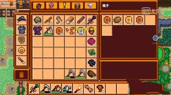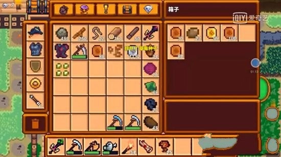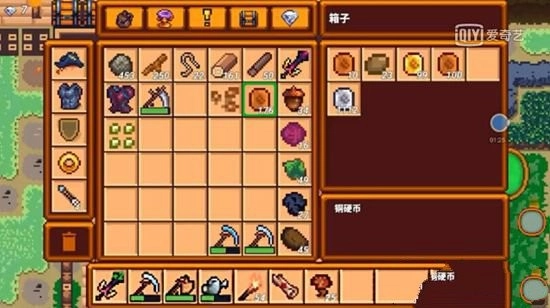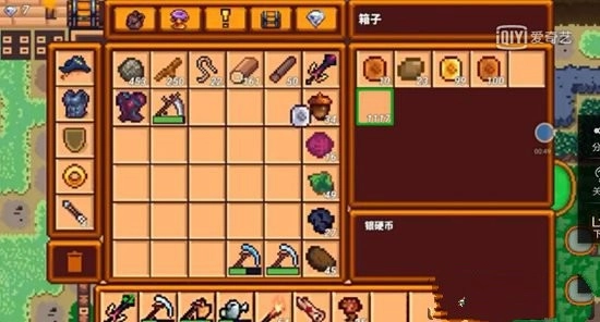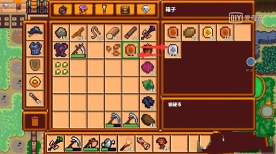 5、接着打开箱子,把88个找零的铜币放进箱子里,如此一来背包里就又只剩下银币了,随后我们再去购买一颗草莓种子。