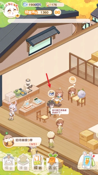 2.随后我们选择对应的设施进行制作,制作好之后点击客人即可送餐。