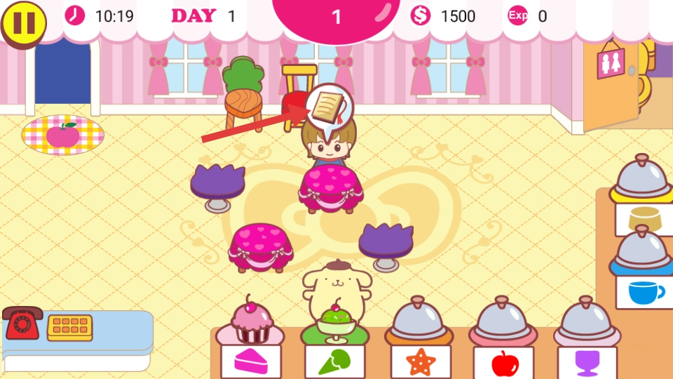 4、顾客用餐后,点击收银台处的顾客,处理结账,获取金币和经验。