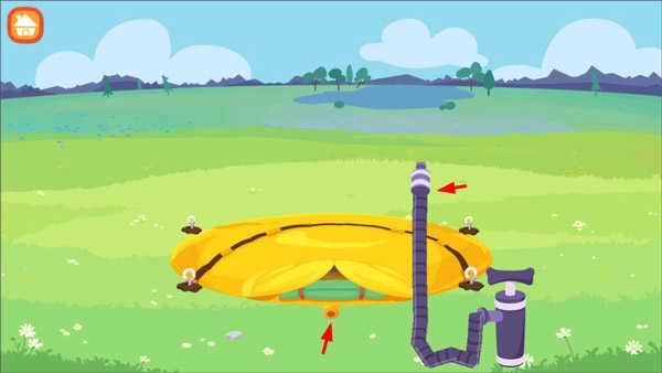 4、主场景设计清新自然,蓝天白云、绿草地与潺潺小溪交织出一幅生动的户外画卷,带来身临其境的郊游体验。