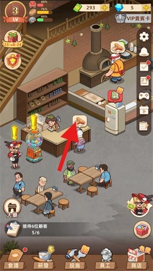 4. 面包制作完成后,点击顾客头顶的气泡,把刚出炉的面包送至顾客桌前。