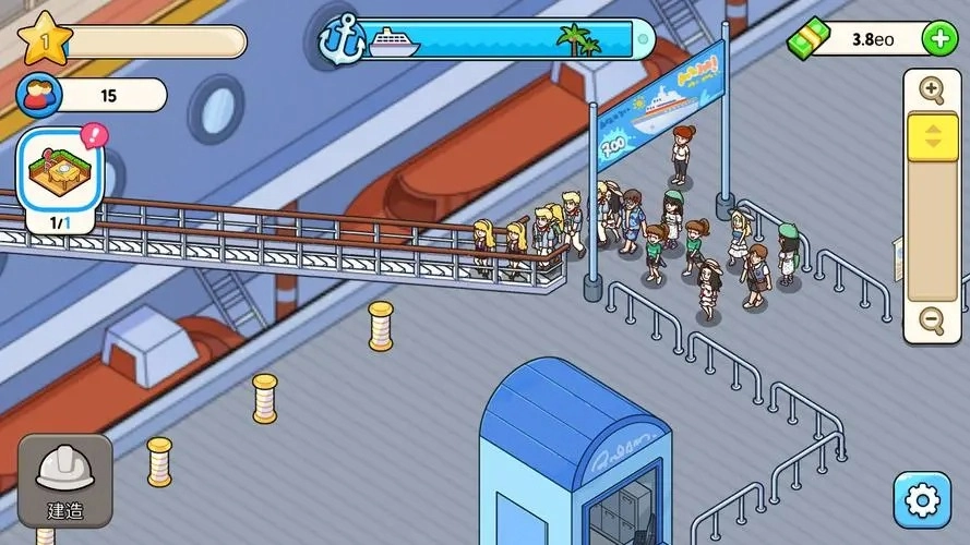 - 设施购置:轻点空白区域,即可建造并升级各类游轮设施,像餐厅、客舱之类。