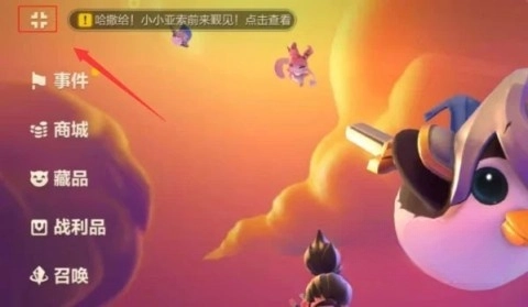 1、第一步,打开金铲铲之战游戏,然后点击游戏界面左上角的图标。