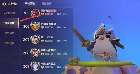 3、接下来点击“顶尖玩家”,就能查看自己在全区的排名,要努力争取进入前500名。