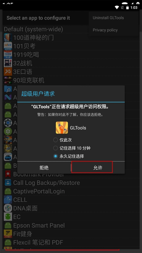 6、要是在使用过程中机器出现问题,可点击右上角的三点图标,接着点击“Uninstall GLTools”进行卸载重装,如此便可解决问题。