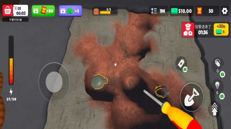 4、借助挖掘工具实施挖掘行动,巧妙避开狱警的巡逻以及监控,稳步推进逃生计划,力求安全逃离。