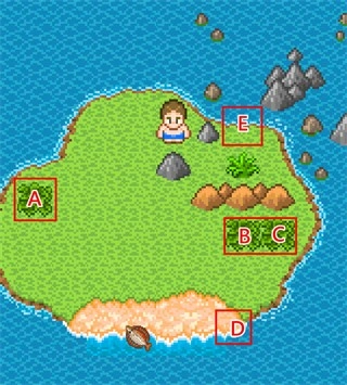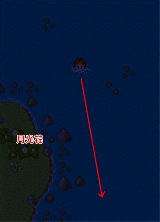 然后,在晚上到本岛海滩(D区)取得「月光花」。若只有一朵月光花,则可以游泳到附近的小岛上,小岛上有5朵月光花。对月光花使用「研钵」,得到「月光花汁」,至少需要25个(5朵月光花)。