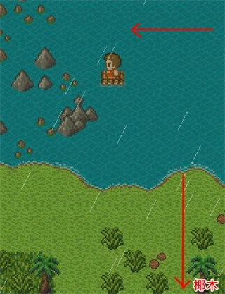 在制作完「沼地钓竿」后,玩家就能收集到制作「小木筏」所需的物品。制作小木筏只能在大地图上进行,但制作完成后还不能直接使用,还需要「船桨」。