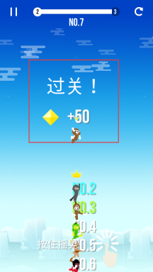 3当你顺利完成某一关卡的飞行挑战后,系统会弹出通关的提示信息,同时你能领取到钻石之类的奖励,接下来就可以去尝试难度更高的关卡了。