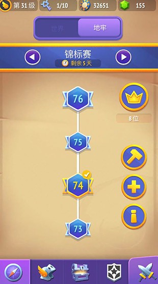 只挑战偶数关卡,争取前五名获取传奇装备奖励。