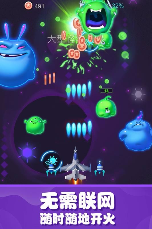 这是一款结合了合成玩法的飞行射击游戏,适合所有年龄段玩家。游戏在保留经典射击战斗体验的同时,创新性地加入了合成元素。玩家将投身于一场对抗外星入侵者的持久战役,守护自己的家园。游戏采用可爱的卡通美术风格,操作方式简单易上手,玩家需要操控战机,巧妙规避敌人的攻击,并击败造型诙谐的外星生物。战斗中可以释放强力技能,消灭敌人还能获取金币,用于解锁和强化各种超级武器,感受极致的火力输出。此外,游戏内还有多种独特的战机等待玩家收集。如果你对这款游戏感兴趣,欢迎前来体验。