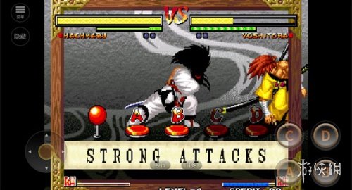这款经典街机格斗游戏拥有丰富的可选角色,每个角色都具备独特的攻击模式与技能,华丽的特效设计能有效点燃玩家的战斗热情。游戏中包含了霸王丸、橘右京等广为人知的经典角色,玩家只需通过虚拟按键,就能轻松操控角色完成各类动作指令。