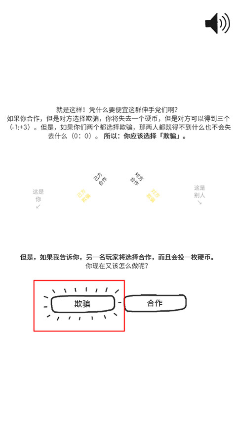 2、这个信任游戏,点击两次“欺骗”是正确答案;