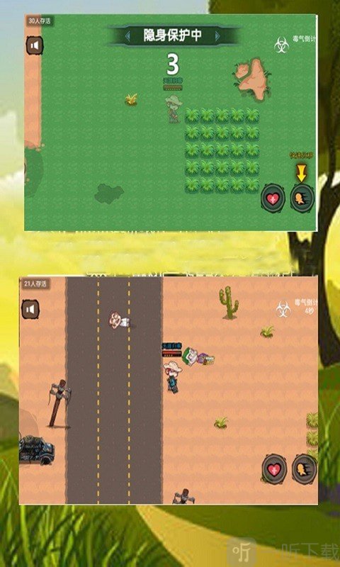 这款休闲游戏采用可爱的卡通风格,融入了大逃杀玩法的经典设定。玩家能自由选择地图区域进行跳伞降落,随着游戏推进可逐步解锁各类枪械装备。若能在探索中发现并开启宝箱,还能获得强力道具提升战斗优势。
