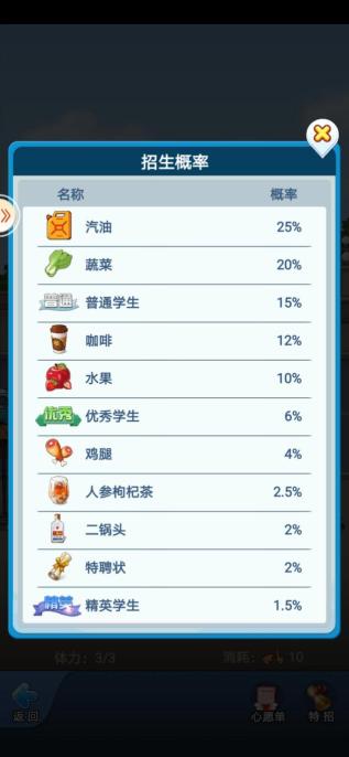 进入游戏主界面后,找到左下方的校园入口并点击,接着选择走访相关的选项,就能成功进入走访页面。要是想查看不同事件的触发概率,还可以通过点击招生相关的功能入口来获取这些信息。
