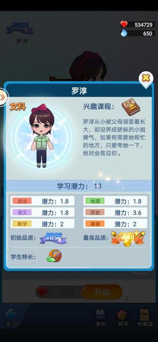 除了能完成学生升级操作外,还可借助保健室(在主页面点击走廊进入保健室,挑选需要升品的学生)来开展学生升品,以此达成学生的全面均衡成长~