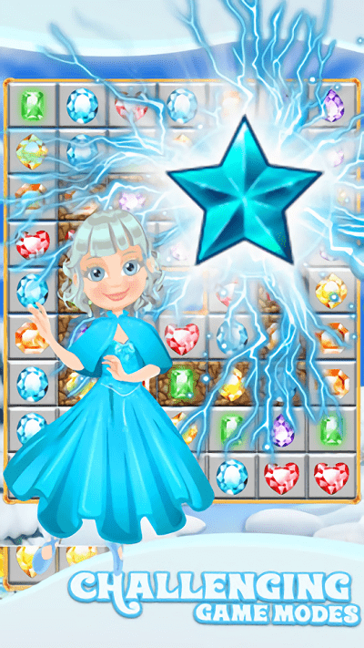 1游戏的基础玩法是通过滑动操作,让三个或更多相同的冰晶连成一线,以此达成消除效果。