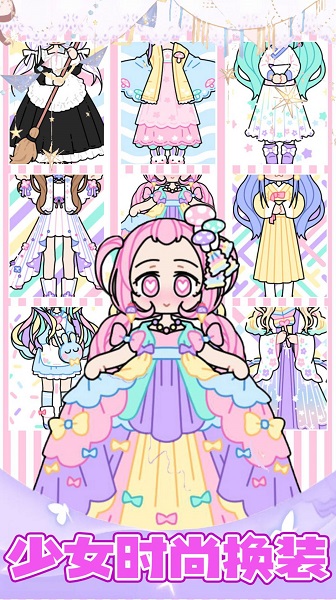 公主风换装女孩正版 这是一款画风软萌可爱的卡通换装小游戏。在这个绚丽多彩的世界里,有着各式各样风格的服饰可供你随心搭配与更换,游戏的趣味性十足,你可以成为知名设计师,为客人们打造专属的时尚造型,尽情体验换装的欢乐吧。