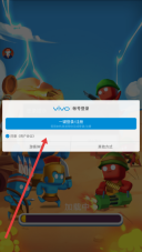 1、在登录界面找到并点击箭头所指的“一键登录/注册”按钮,通过vivo账号完成快速登录后进入游戏,即可体验对战玩法。
