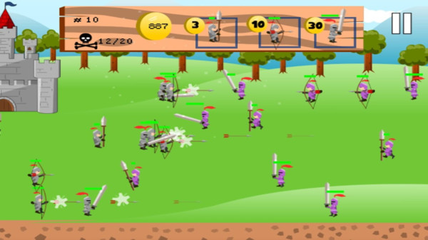 2、击杀敌人能够获取金币,积累金币可召唤实力更强的士兵。