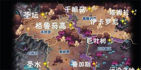 圣坛:依次净化巨岩谷–毒蛛领地–巨叶林区三处圣坛之后在如图位置刷新出星能,要抢