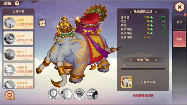 游戏里的坐骑有普通和稀有两类。普通坐骑完成主线任务就能得到,稀有坐骑得参与游戏里的特定活动才能获取。和普通坐骑比起来,稀有坐骑的专属技能以及属性加成要更厉害一些。