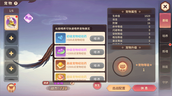 2侠士可借助战斗或宠物经验药来提升宠物等级,随着等级的提升,宠物的各项属性也会得到快速成长。
